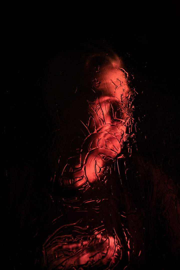 Over the long weekend, I created a makeshift photo studio at home and experimented with coloured lights and a nifty little set design element that gave me exactly the obscured, messed up look I wanted. (Aloe vera gel was involved…)